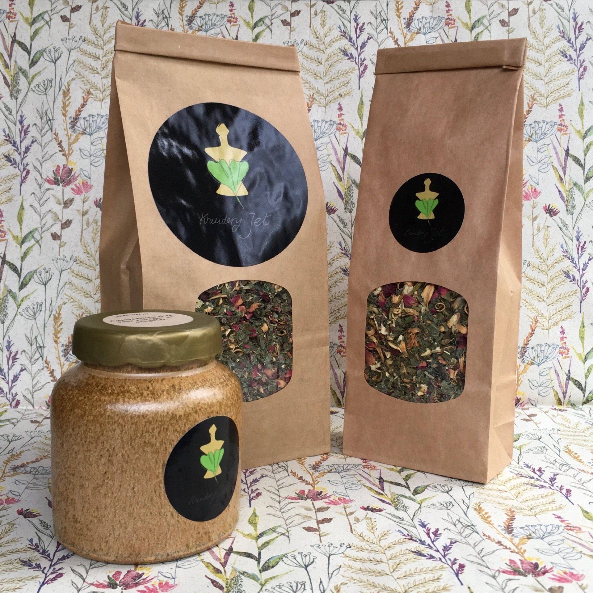 De kruidenmengsels verwerk ik door de kruiden via extratie in alcohol met water of in appelazijn te laten opnemen. Als de kruiden in alcohol zijn getrokken heet het een kruidentinctuur. Zijn de kruiden in appelazijn getrokken dan voeg ik er honing bij en heet het oxymel. Deze kruidenextracten kun je dan in druppelvorm innemen.